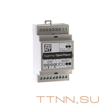 Адаптер OpenTherm (724) – устройство, которое позволяет управлять газовым котлом, поддерживающим интерфейс OpenTherm, через приборы ZONT по цифровой шине, что обеспечивает расширенные возможности управления и плавную регулировку мощности (модуляция горелки). Используется совместно с любым термостатом или контроллером ZONT.