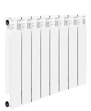 Биметаллические радиаторы предназначены для отопления многоэтажных домов. В этих радиаторах секция выполнена из стального вертикального и горизонтального коллектора. Конструкция полностью исключает контакт теплоносителя с алюминиевым корпусом. Сочетание алюминиевого «корпуса» и стального «сердечника» позволяет прибору отличаться особой прочностью и долговечностью. Благодаря этой технологии прибор максимально устойчив к воздействию избыточного давления при гидравлических ударах в системах отопления. Особый дизайн, вертикальные и горизонтальные ребра биметаллического радиатора улучшают проход воздуха, что увеличивает теплоотдачу.