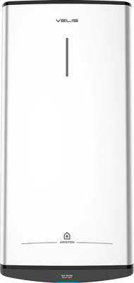 Электрический водонагреватель Ariston (Аристон) ABS VLS PRO R 50 выполнен в металлическом корпусе и отличается элегантным, стильным дизайном. Модель предназначена для настенной установки и имеет толщину всего 27 см. Внутри находится два эмалированных бака общим объемом 50 литров. Для управления прибором предусмотрена ручка в нижней части корпуса.