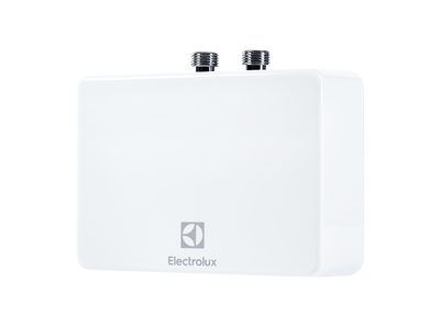 Компактная модель проточного водонагревателя Electrolux NP6 Aquatronic 2.0 . Принцип работы прибора основан на автоматическом включении нагревательного элемента в момент открытия крана, благодаря высокой мощности и эффективности вода нагревается до нужного температурного уровня практически мгновенно. Эффективность составляет 95 %, что выгодно выделяет технику среди своих аналогов и конкурентов. Встроен защитный термостат, который отключат питание системы при достижении критического уровня температуры в 70 градусов.