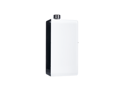 Компактная модель проточного водонагревателя AQUATRONIC DIGITAL имеет красивый информативный LCD- дисплей и удобные сенсорные кнопки. В комплекте с оборудование предусмотрены все необходимые монтажные компоненты, с помощью которых пользователь осуществляет соединение техники с трубами. Автоматическое включение и отключение стального нержавеющего нагревательного элемента, когда пользователь открывает и закрывает кран. Такой процесс функционирования удобный и экономный. Можно осуществить раздачу воды на несколько водоразборных точек. Усовершенствованная электронная система управления, обеспечивает поддержание точного уровня температуры воды независимо от величины потока и регулировки смесителя. Мощный спиральный нагревательный элемент находится в специальных колбах, обладает высокой производительностью и минимальным расходом электроэнергии. Эффективность приготовления горячей воды достигается уровня 95%.