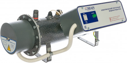 Проточный электрический водонагреватель Эван ЭПВН-7,5 (220 Вольт, 7,5 кВт) состоит из корпуса с выходными и входными патрубками, аварийного термовыключателя, датчика терморегулятора, и предохранительного и обратного клапана. К корпусу крепится фланец с нагревательными элементами из нержавеющей стали. Бак нагрева имеет полимерно-порошковое покрытие, защищающее от коррозии.