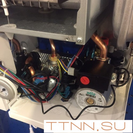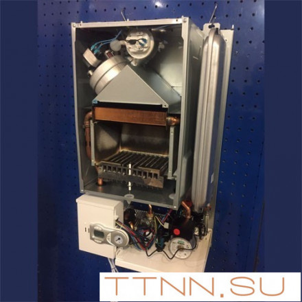 В комплектацию входят два теплообменника: медный с антикоррозийным покрытием и из нержавеющей стали; малошумная горелка, система защиты от замерзания, электрический розжиг, защита от гидроударов, циркуляционный насос, антиблокировка насоса и другие устройства для безопасной эксплуатации. При необходимости может быть подключен датчик уличной температуры и дистанционное управление.