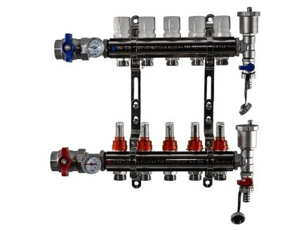 Каждая труба системы водоснабжения, отопительной системы водяного отопления или теплого водяного пола подключается к коллектору, что позволяет осуществлять регулировку и контроль потока теплоносителя индивидуально в каждом циркуляционном контуре.