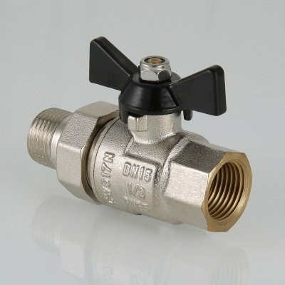 (VT.327.N) Полнопроходной усиленный шаровой кран. Рекомендуется к применению в случаях, когда на арматуру возможна передача изгибающих моментов из-за несоосности или температурных деформаций трубопроводов. Материал корпуса и затвора – латунь CW602N, стойкая к вымыванию цинка, седельных колец и сальниковых уплотнений – тефлон с термоприсадками. Ремонтопригодный. Длина резьбы увеличена для создания более плотных соединений. Кран допускается к использованию при температуре до +120 °С (снижение характеристики обусловлено наличием полусгона с уплотнением из EPDM). Тип рукоятки – «бабочка». Модель укомплектована присоединительным полусгоном. Резьба присоединений – наружная/внутренняя.