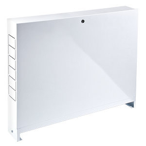 (VTc.541.D) Пристраиваемые коллекторные шкафы (распределительные шкафы) VALTEC VTc.541.D предназначены для размещения в них коллекторов и коллекторных блоков систем внутреннего водопровода и отопления, а также смесительных узлов для водяного теплого пола VT.COMBI и VT.DUAL. Установка шкафа – пристенная. Детали шкафов коллекторных VALTEC выполнены из оцинкованной стали. Лицевые поверхности окрашены порошковой эмалью цвета RAL 9016 с предварительной фосфатной подготовкой поверхности. В боковых стенках корпуса выполнена перфорация, сегменты которой удаляются в месте, удобном для пропуска присоединяемых трубопроводов. Выдвижные ножки дают возможность регулировать высоту шкафа от 661 до 691 мм. Ножки имеют отверстия для крепления шкафа к полу. Откидная дверца имеет замок, защищающий установленное в шкафу оборудование от несанкционированного доступа. Внутри шкафа установлены передвижные монтажные рейки, к которым крепится оборудование. Глубина шкафов VTc.541.D – 135 мм. Ширина предлагаемых моделей: ШРНГ 3 – 704, ШРНГ 4 – 854, ШРНГ 5 – 1004, ШРНГ 6 – 1154, ШРНГ 7 – 1304 мм.