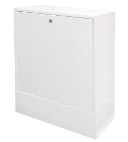 Детали шкафов коллекторных VALTEC выполнены из оцинкованной стали. Лицевые поверхности окрашены порошковой эмалью цвета RAL 9016 с предварительной фосфатной подготовкой поверхности.