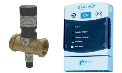 САКЗ-МК-1 БЫТОВАЯ состоит из сигнализатора СЗ-1ГТ (природный газ)/сигнализатора СЗ-3-1С (сжиженный газ) и клапана КЗЭУГ (от Ø15 мм. до Ø32 мм.).