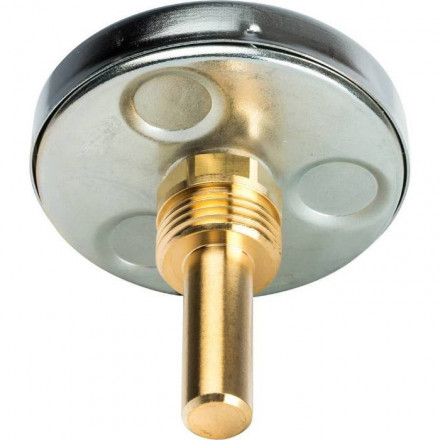 Термометр биметаллический Stout (Стоут) SIM-0001-635015 с осевым расположением штуцера, т.е. ось циферблата перпендикулярна датчику, оснащен резьбовой погружной гильзой. Прибор применяется в разных отраслях для определения температуры различных сред, которые могут использоваться в системах вентиляции, кондиционирования и отопления.