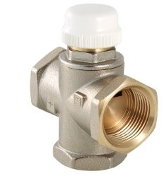 Клапан предназначен для использования в смесительных узлах гидравлических систем (байпасные узлы подмеса, узлы смешения для получения заданного уровня температуры смешанной жидкости и т.п.). Регулирование клапаном может осуществляться вручную или с помощью сервопривода. Корпус выполнен из латуни марки CW617N (европейский стандарт EN 12165), никелирован. Материал штока, основания золотника и пружины – нержавеющая сталь марки AISI 316, золотникового уплотнителя – синтетический каучук EPDM. Резьба присоединительных патрубков – внутренняя, 1". Данная модель – c боковым смешением и допускает полное перекрытие входных патрубков.