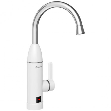 THERMEX (Термекс) Hotty 3000 представляет собой проточный водонагреватель, который устанавливается вместо обычного кухонного смесителя. Установленный у основания световой индикатор отображает режим работы смесителя-водонагревателя. Благодаря современному лаконичному дизайну данная модель будет прекрасно смотреться в кухне с любым интерьером.
